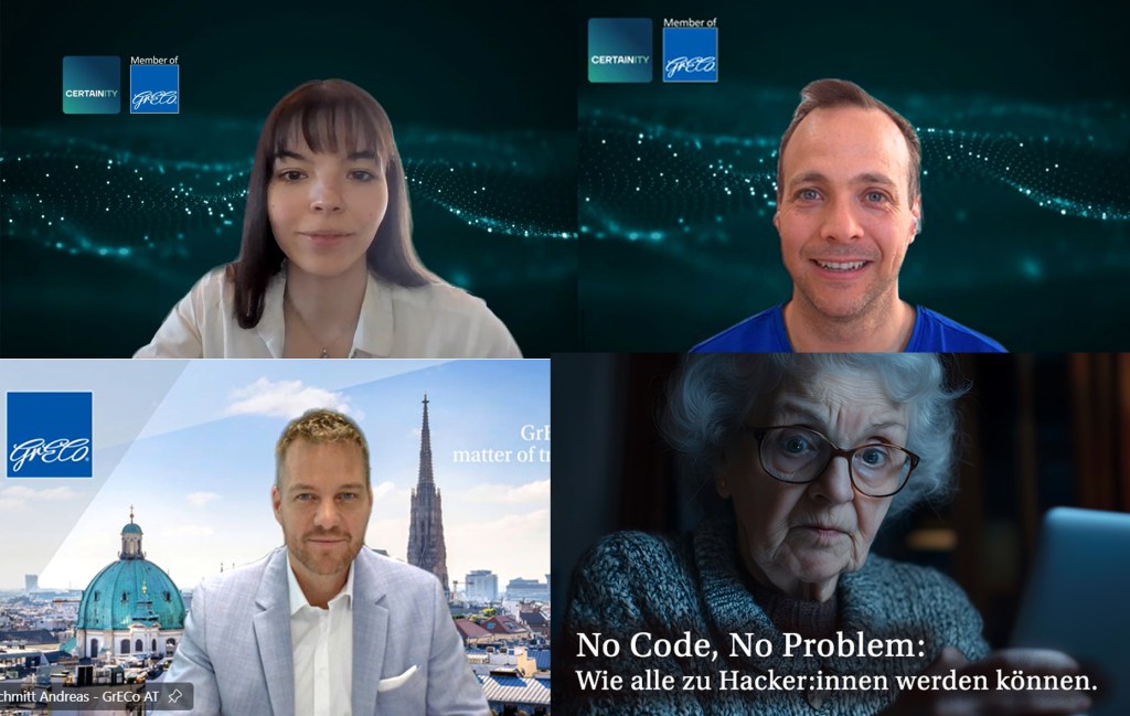 Beim 9. Online-Insight mit @CERTAINITY zeigte Fabian Mittermair, COO der CERTAINITY, wie schnell mit Hilfe von AI wie ChatGPT auch ein absoluter Laie zum Hacker werden kann – nach dem Motto „No code, no problem“.
